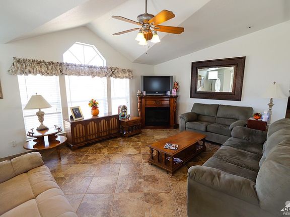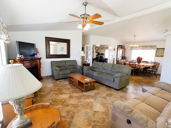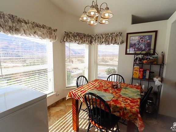 Breathtaking panoramic mountain view home complete with an oversized garage (24 x 24), RV concrete slab with electric gate. Outdoor enclosed / covered jacuzzi room. Lots of natural lighting with solar tubes both bathrooms and master closet. The office /den could be used as a 3rd bedroom. Master bathroom has a sunken in soaking tub with separate shower. Gourmet style kitchen with center island. Move in ready. Attached to a 433-A permanent foundation so you could finance through FHA with ease. Minutes from Cabazon outlet mall, Morongo Casino and only 15 minutes to Palm Springs.