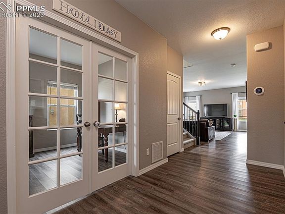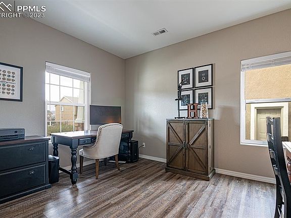 Welcome to this beautiful two story home in Greyhawk at Northgate! This stunning property built in 2012 is a true gem that offers the perfect blend of style, functionality, and convenience. Prepare to be impressed as you step into this remarkable home! As you enter, you'll be greeted by a large foyer, office with french doors and beautiful LVP flooring that exudes both elegance and durability. The open concept design seamlessly integrates the living room, kitchen, and dining room, creating an inviting and versatile space for entertaining guests or spending quality time with family. The flowing layout ensures a sense of togetherness while still allowing each area to maintain its individual charm. Another one of the standout features is the spacious 4 car tandem garage, providing ample space for your vehicles and additional storage. Speaking of storage, this home offers plenty of it throughout with large closets and a shed out back, ensuring you have room for all your belongings and more. The stairs boast new carpet, which leads upstairs to all four bedrooms along with the laundry room, loft and mountain views! The loft space is perfect for any lifestyle you wish to have! Location is key, and this property does not disappoint especially with one of the larger backyards in the neighborhood! This home is Situated off Northgate and Voyager, you'll enjoy the convenience of being close to everything. Whether it's shopping, dining, entertainment, or outdoor activities, you'll find it all within easy reach. Don't miss the opportunity to call this exceptional property home. Schedule a viewing today and experience the best of Colorado Springs living!