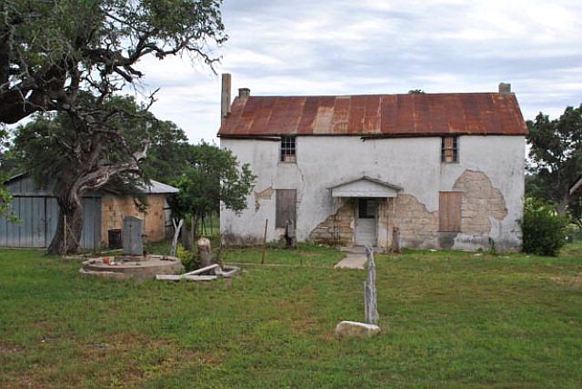 Step back in time in this circa 1882, 2 story, 3/1, limestone home overlooking your farm & ranch land w/beautiful Hill Country view. It needs restoring & is ready for your creativity to bring it back to its old glory. The stone & wood cabin has been restored & is move in ready. Owners will entertain reasonable proposal to divide. Ranch fronts RR 1631 & wraps around the old Rheingold School house.