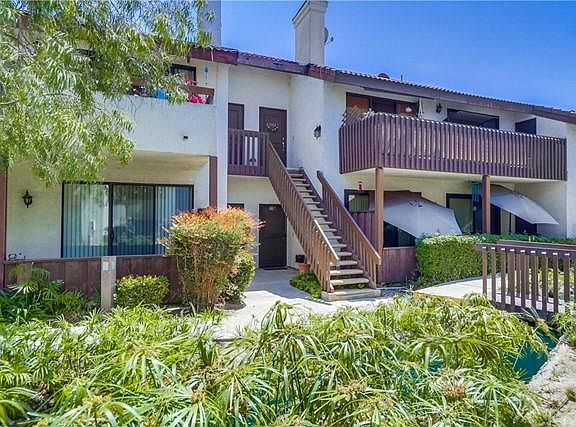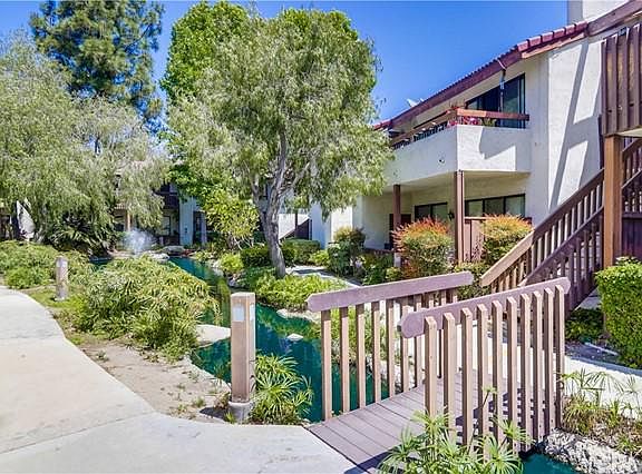 ABSOLUTELY BEAUTIFUL!!! This turn-key upstairs unit in a Serene, Peaceful and Gorgeous Gated Community!! Updated Kitchen and Bath with granite counter tops, cathedral ceilings, newer paint, crown molding and upgraded base boards, high quality manufactured wood flooring throughout, fireplace, inside laundry, Central air conditioning and forced heat, 2 car enclosed garage with roll up door and opener, extra storage closet on the large balcony overlooking the stream!! A must see to admire all it has to offer. The condo is situated in a beautiful complex surrounded by trees and creeks throughout giving you a sense of relaxation and peace. Complex community offers a refreshing pool, spa, tennis courts and a club house for your enjoyment!! Appliances are Negotiable which include refrigerator with water and ice dispenser in the door, Freestanding stove and oven, built in microwave and dishwasher along with side-by-side washer and dryer. The association covers the water and trash. Located conveniently close to freeways (22, 405, 5 and 605) and shopping. Gated entry into the community with guest parking.