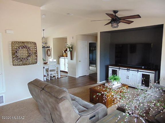 Beautifully done, very well maintained, country home ready for new owner. Attractive plank tile flooring in large spacious kitchen and dining area. Built in microwave over the range. Kitchen appliances all stainless. New complete Rheem A/C system installed 07/2018 with warranty. Carpets just professionally cleaned. Oversize two car garage with ample space for storage. Home lay out is very functional with lots of storage. Large walk in bonus closet in hall way. Two covered areas in the back yard for entertaining. Plenty of room on this one acre lot for a family farm. No HOA! Room for RV's and Toys. Great sunset views from the fire pit area.