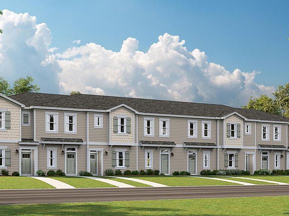 The Dolce is a new, two bedroom townhome plan in Jacksonville, Florida. Entering the home, you'll notice the spacious L-shaped kitchen with plenty of cabinets and counter space to prep meals with ease. The kitchen sink overlooks the open-concept dining and gathering room. Sliding glass doors let in natural light and lead out to a covered lanai with a storage closet. A powder bath is located under the stairs. Located upstairs are two bedrooms, two bathrooms and a laundry closet. The Owner's Suite has a private bathroom and walk-in closet. Bedroom 2 also include a private en suite with a closet.