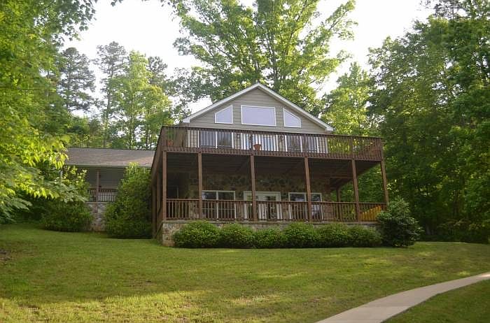 You will feel as though you are escaping to your own retreat every time you come home to this secluded 4 bedroom, 3 bath lake house. The home offers privacy as it is surrounded by lots of trees that compliment the gorgeous lake views from both the upper deck and lower patio. Strategically placed windows allow plenty of natural lighting, and you can see the beautiful views from the great room, kitchen and dining areas which are all open to one another. This open floor plan in the living area with cathedral ceilings and dark wood beams makes the perfect spot for family and entertaining. The kitchen, with its long breakfast bar is perfect for lots of kids having breakfast or football parties in the fall with a full spread laid out - this will become a favorite place for your friends and family to gather. The main level also has the master suite plus 2 additional bedrooms and a hall bath. On the lower level, there is a bonus room that opens to the patio, a great laundry room with storage, a full bath and a 4th bedroom. A perfect place for gathering as a family or perhaps setting up a game room. There are sidewalks all around the property, making access to the house and dock very easy, and, in fact, the sidewalks were created for wheelchair access to both levels of the home and to the dock. When you visit this home, it's easy to see the many possibilities it has to offer. Please call for more information and your private showing today.