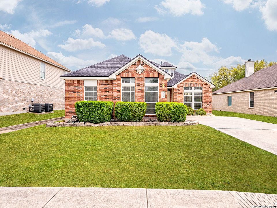 This charming 3-bedroom, 2-bathroom single-story home offers beautiful curb appeal with a side-entry garage and a long driveway. Inside, you'll find an abundance of natural light throughout and a spacious layout perfect for comfortable living. The kitchen features ample cabinet and countertop space, ideal for cooking and entertaining, while the formal dining room offers flexibility and could easily be used as an office. The generously sized bedrooms provide plenty of space, and the primary ensuite includes dual vanities, a walk-in shower, and a separate large soaking tub. The backyard features a patio slab and plenty of green space, perfect for relaxing or outdoor activities. Additionally, the neighborhood boasts fantastic amenities, including a pool, clubhouse, playground, and sports court, making it an ideal community for recreation and leisure.