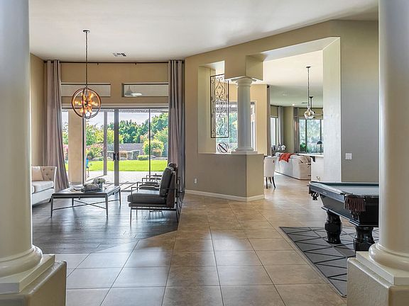 Gorgeous single level home with impressive foyer and 12 foot ceilings throughout. Foyer opens to a luxurious backyard with the double sliders. Large upgraded kitchen has gas range, quartz counter tops, beautiful cabinets with plenty of storage, plus breakfast bar and eat in kitchen. Oversized family room with beautiful windows overlooking the spacious backyard. Den/office has double doors. Large master suite with built in storage in closet and large master bath with separate Jacuzzi tub and walk in large shower and double sinks. 2 bedrooms share a Jack n Jill bathroom with separate vanities. Huge 3 car garage. Back yard includes R/V gate and fruit trees and garden. This yard is made entertaining w/massive covered patio, pergola and large resort style pavers with built in BBQ and fire pit.