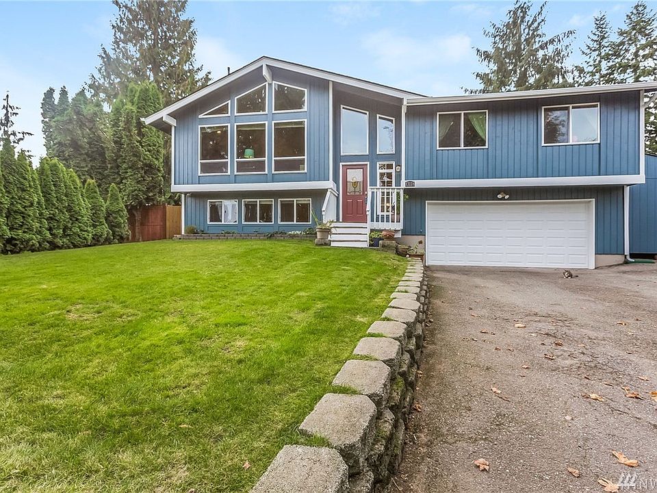 Tile inlay & hrdwd entry, open rail stairs, vaulted ceiling, cathedral windows & exposed wood beam sets the tone for this well maintained home on huge cul-de-sac lot w/ sought after Snohomish Schools. Updates incl new ext paint, windows, updated fixtures & flrs, heat pump, remodeled bthrms, garage door & electrical panel. Downstairs MIL w/ kitchenette, lg fam rm, spacious bdrm w/ attached 3/4 ba. Office in back of garage. Storage shed, garden space, RV Parking, chicken coop, firepit & more!