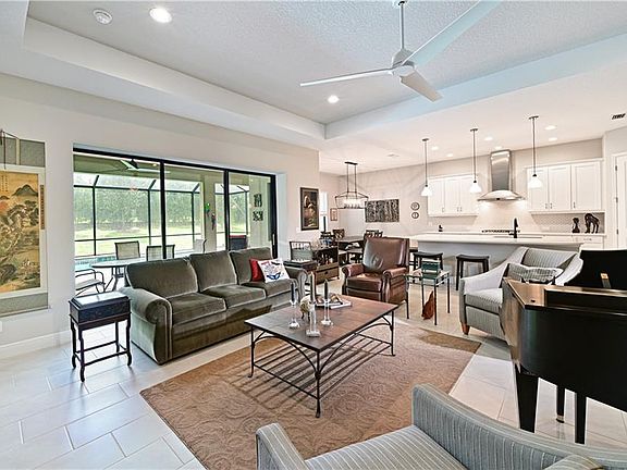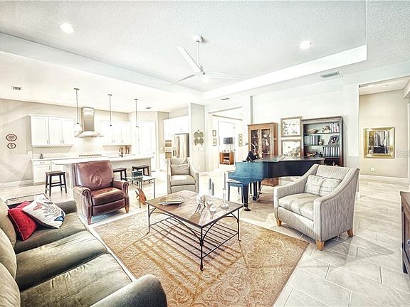 - Interior Features: Ceiling Fans(s), Eating Space In Kitchen, High Ceiling(s), Master Bedroom Downstairs, Open Floorplan, Stone Counters, Walk-In Closet(s), Kitchen/Family Room Combo, Window Treatments, Coffered Ceiling(s)