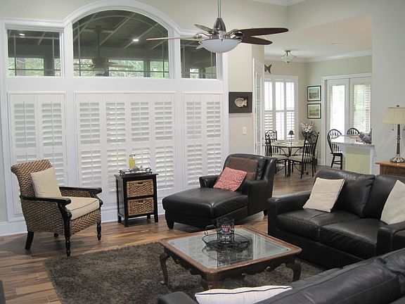 FOR SALE BY OWNER/RAY SHORT PH: 251-284-2267 4 /3.5 overlooks Fish River. House is situated next to community boat launch, pavilion, bathrooms, and 2 story dock. Approx. 2260 SF main level with 3/2.5 bath. Approx. 425 SF above garage 3/4 bath. House is elevated on 4 ft. concrete retaining wall. Exterior is cement board. Main level 4-ton heat pump installed in 2017. Above garage 12K Mitsubishi ductless heat pump installed in 2018. Metal roof re-screwed in 2018. New LED retrofitted recessed lighting throughout. Samsung SS appliances. Tile, crown molding and plantation shutters throughout main level along with 8 ft. doors, 10 & 12 ft. ceilings and large fireplace. Trey ceilings in dining room and MBR. Customized oversize His and Her closets in MBR. Master bath has water closet door, jetted tub and easy to clean all glass shower door. All bedrooms have large closets, and large storage space in attic. Main level equipped with central vacuum and cherry plywood cabinets. Granite in kitchen, fireplace and wet bar. Front of house has un-screened rocking chair porch. Back has two screened porches. Double wide cement driveway with boat parking on side of house. Additional boat or trailer parking at common area located in the cul-de-sac. Furnishings are negotiable.