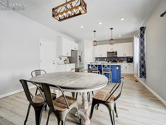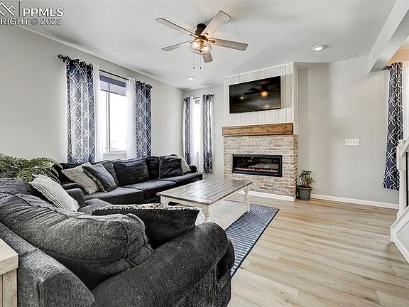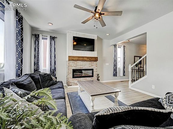 Welcome to this stunning two story home that seamlessly blends modern updates with cozy charm. As you step inside, you’ll be greeted by newly installed plank flooring, adding warmth and style to the open-concept living space. The spacious living room features an electric fireplace, creating the perfect ambiance for relaxing evenings. The kitchen boasts a center island, ample counter space, and an open flow that makes cooking and entertaining effortless. Upstairs, you’ll find a versatile loft area, ideal for a home office, playroom, or reading nook. The primary suite is a private retreat with an en-suite bathroom, extra-large walk-in closet, and built-in bookshelves to showcase your favorite décor or collection. Two additional well-sized bedrooms and a full bathroom complete the upper level. The fully finished basement offers even more living space with an expansive rec room, perfect for a media area, game nights, or a home gym. You'll also find additional bedrooms and a full bathroom, making this level perfect for guests, multi-generational living, or extra storage. Nestled in the highly sought-after Meridian Ranch community, this home offers access to top-tier amenities, including a recreation center, walking trails, parks, and a golf course. Conveniently located near shopping, dining, and military bases, this home truly has it all