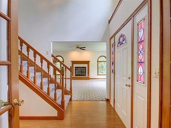 Gorgeous Victorian style colonial on 3.8 acres of country setting on the market for the first time since being built. So close to everything but out in the quiet county completely private and surrounded by farmland. Enter through the 2nd story foyer with luxury vinyl flooring. Off the foyer is a large light filled family room with a gas fireplace. Also off the foyer is a formal sitting room or can use as an office in addition to the office that is already on the main floor. Large eat-in kitchen features plenty of oak cabinets, kitchen island, 2 pantries, appliances and glass doors that overlooks the backyard. The main floor also features a laundry room and half bath. The second floor has a large master suite with vaulted ceilings, 2 walk-in closets and over sized master bath. 3 additional bedrooms and full bath complete the second floor. The amazing in-law suite comes complete with full kitchen, family room, bedroom with double closets and full bath. The basement is finished and can be used as a rec room. There is also a canning kitchen in the basement and walkout to garage. Large pole barn for additional parking and toys! Roof replaced 2017, furnace 5 yrs, Anderson Double hung windows, new sump pump 2018, Shop building heated and insulated. Sewer is Aeration system. This is an absolutely amazing property, do not miss your chance, call for a private showing today. Extra One Acre of land available in the back to purchase! Please ask for details. Sewer is Aeration system.