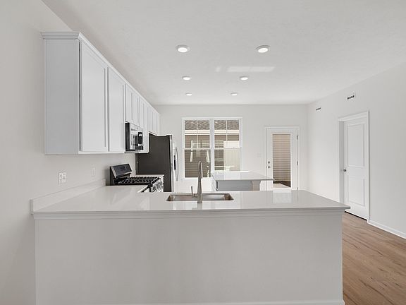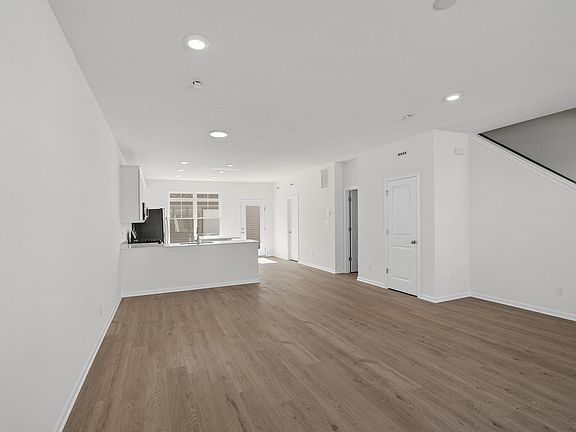 Open concept w/ 9 ft ceilings, 42" cabinets w/ Quartz counters, Stainless Kitchen appliances, half bath on first floor. Owner's bedroom with walk-in closet and on-suite bath. 2 additional bedrooms with a shared full bath 2nd flr laundry, luxury vinyl plank flooring throughout 1st floor. Private courtyard, ring doorbell, low maintenance landscaping w/ irrigation.