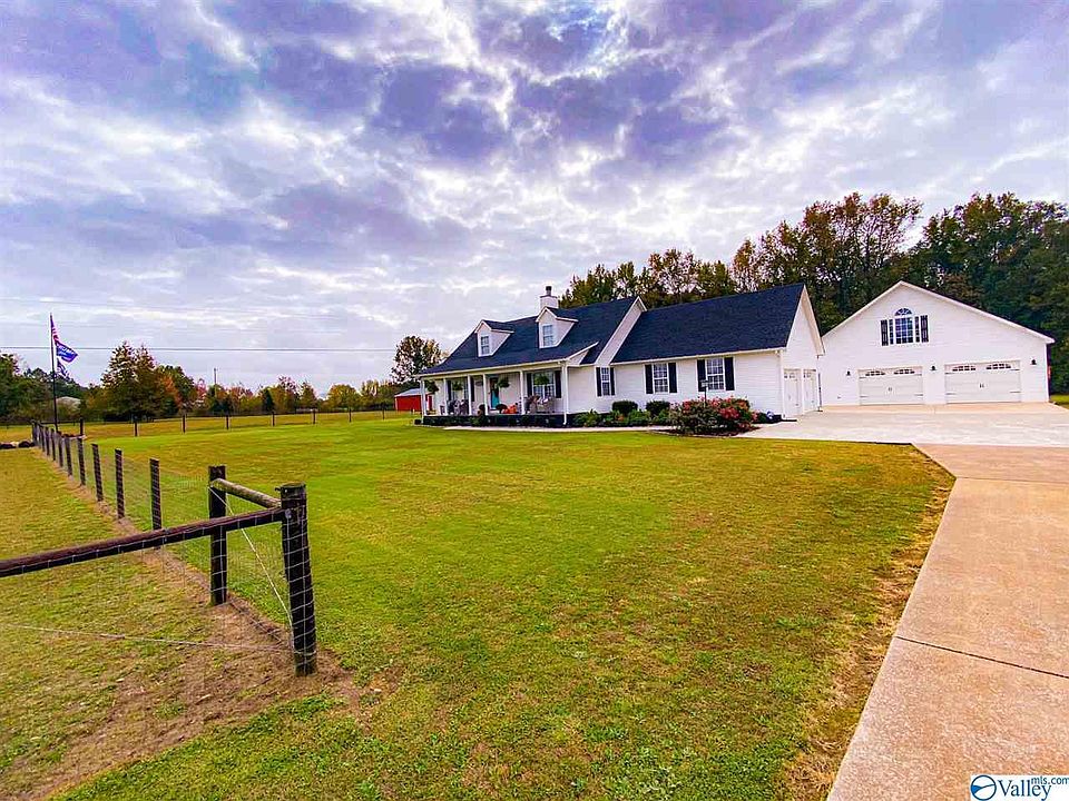 Beautiful home, located within 30 minutes of Huntsville, 2 stories, 3 bedrooms, 2 full baths 1 half bath, featuring the latest new black stainless appliances, modern LVP plank flooring throughout, new designer lighting, newly screened back porch, completely updated master bath. The homes roof was replaced within the last 5 years. The home has a 2 car attached garage as well as a 2 car detached garage with a personal gym. The detached garage comes complete with a second story storage area. The home is situated on a gorgeous 5 acre farm. The land has recently been fenced and has a 36'X60 barn with stalls. Additional acreage is available. Square footage to be verified by purchaser.