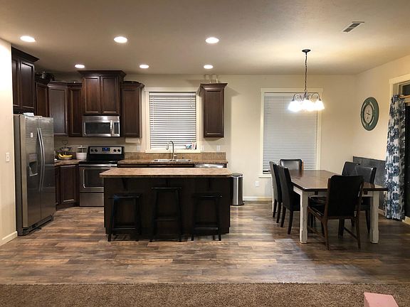 5 year old home with beautiful landscaping, huge great room/kitchen, back patio, fruit trees, and garden boxes. No electricity bill due to solar panels. Stainless steel appliances. No smoking. No pets. Renter pays gas, water, and trash. Renter responsible for mowing. 1 year lease