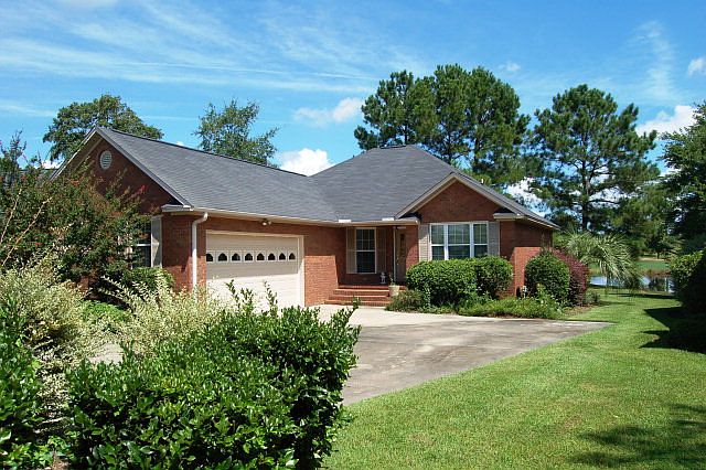 Great layout, great location! This three bedroom, two bath, brick home offers a split bedroom floor plan, side load garage, pond/golf course setting, hardwood flooring, and a spacious master suite with screened porch access. Appliances convey. Enjoy lawn maint($130.00 qtr) and com ctr with work out room and pool. Play the top ranked Wyboo Golf Club, membership optional. Only 5 min to lake access.