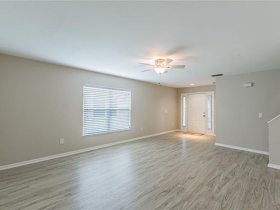 BACK ON MARKET! Adorable & affordable - welcome home to great value in a great neighborhood! Nestled beneath mature oaks and a stately palm surrounded by tropical landscaping, this 4/2/2 home has all you need and is available now! Stylish laminate flooring throughout the main living areas provides a continuous flow from room to room, and the modern neutral color palette will complement any décor. The large living room is a versatile space that can easily accommodate your furnishings and features a ceiling fan & closet. The master suite is located downstairs for optimal privacy and boasts a lovely tray ceiling and oversized window with a view of the grassy backyard, plus there's a full bathroom with tub/shower & large vanity. The eat-in kitchen is well-equipped and has lots of cabinets, stainless steel appliances, breakfast bar, dining area, & sliders to the lanai. The screened lanai is ideal for relaxation or playtime, with a ceiling fan to keep you cool. The spacious backyard is fenced and features a tiled patio area that's perfect for grilling or lounging in the sun. Secondary bedrooms are located upstairs and have carpeting & ceiling fans. The full bathroom offers a garden tub with shower & vanity with cabinets. (New A/C installed in 2016 & roof replaced in 2017!) Don't miss your chance to own this Brentwood Hills home and you too can enjoy excellent amenities such as the huge community pool with covered pavilions, tennis courts, athletic field & playground! Great schools and only minutes from shopping & dining.