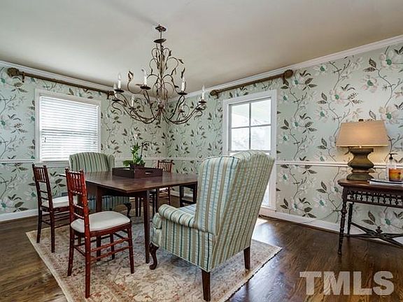 Hayes Barton painted brick 1.5 story with huge covered front porch and 2 car garage. Tons of charm and character throughout. 5 bedrooms and 3.5 baths. Updated kitchen with granite countertops, island and stainless appliances. Oversized master bedroom and bathroom w/ tub and sep. shower. Beautiful hardwoods throughout first floor and most of second. 35' side deck. Home sits on secluded cul-de-sac street. Lacy, Oberlin and Broughton schools. Close to Village District, Fletcher Park and Downtown!