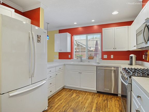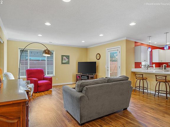 Single level living in sought after Oak Knoll Neighborhood! Darling plan includes 1236 sq ft with 3 beds & 2 full baths. Nice open & bright living room with dining area. Kitchen has eating bar, SS appliances & FS gas range. Primary suite has tub/shower combo & large walk-in closet. Garage includes wheelchair/walker accessibility, shelving, workbench & garage door opener. Darling patio with pavers, custom fencing/gate, sprinkler system for yard, blueberry plants. Solar panels