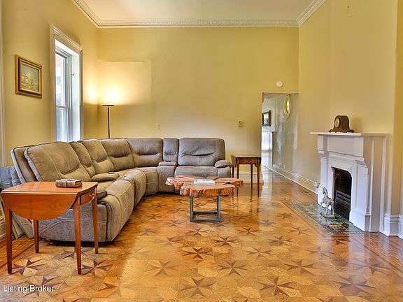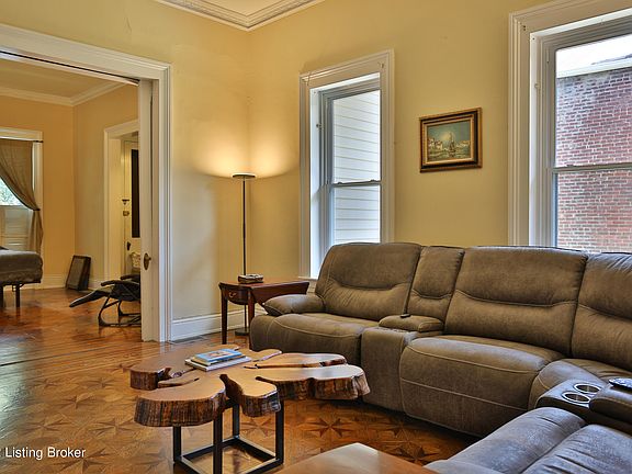 Executive home, in great east downtown neighborhood with loads of potential. Currently used as a duplex, this house could become an incredible 3-4 BR, 2 Bath single family home with its stately curb appeal, brick exterior, bracketed cornices, double door front entry, balcony, wrought iron fencing, and nicely landscaped yard. This historic house is truly a neighborhood jewel with lots of options and loads of potential. Inside, you will discover a sweeping staircase, incredible inlaid hardwood floors, 12 foot ceilings, plaster crown molding, 5 fireplaces, stain glass windows, transom doors, and an unfinished basement, perfect for bourbon storage or a wine cellar. There's also a 2212 square foot, brick, 2 BR- 2BA, 1 Car carriage house, with an interior currently left unfinished; but ready for your custom touches! Great to finish and generate additional rental income. (2 BR-2BA apartments in 40206 rent on average for $1939/month).