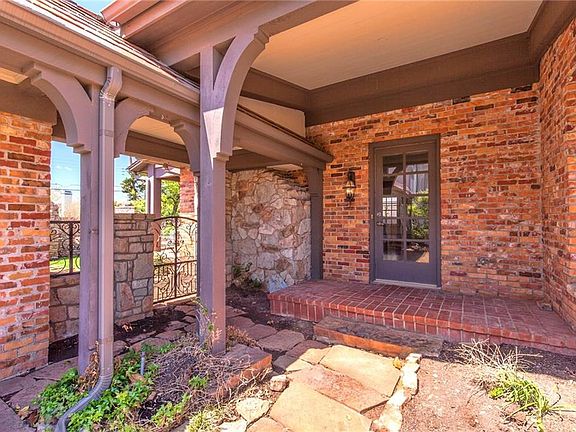 Classic Nichols Hills Manor! This stone & brick Tudor is ideally nestled on a beautiful street within walking distance of the parks. This lovely home features prime living spaces with a large kitchen open to family room overlooking outdoor living space. There are hardwood floors and nice woodwork throughout. Wonderful living room with double sided fireplace with library on the opposite side. Finished basement of 482' is included in footage with tile flooring and good living space. Master suite features large walk-in closet and light bright bath! Two addition bedrooms have baths. There is an optional 4th bedroom located opposite master and is just in need of a closet. Backyard oasis with patios, pool, basketball goal, and outdoor fireplace. This special home exudes character and grace. You will not be disappointed by the location and space!