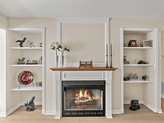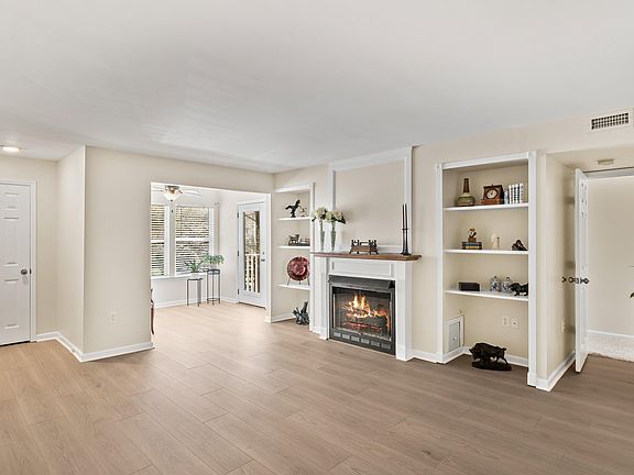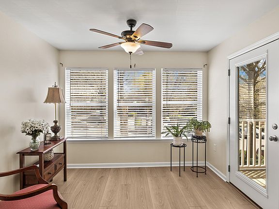 Renovated 2-bedroom / 2-bath condo in one of the most desirable areas in North Raleigh. The home has NEW (2024) 9'' plank LVP flooring in the living areas, NEW (2024) carpet in bedrooms, NEW (2024) interior paint, new heat and AC in 2024, NEW (2023) water heater, NEW (2024) mirrors, and vanities in both bathrooms. ALL popcorn finish on ceilings has been removed, leaving beautiful smooth ceilings. Exceptional walk-in closets in each bedroom. The kitchen includes a refrigerator, dishwasher, gas range, washer, and dryer. There's also a dining alcove. A fireplace in the living room comes with gas logs, and ample shelf space flanks it. A lovely sunroom extends off the living room, and there's a private terrace with storage. Enjoy the COMMUNITY POOL and plenty of parking. Minutes away from shopping, dining, and entertainment. You'll love this charming home and enchanting neighborhood.