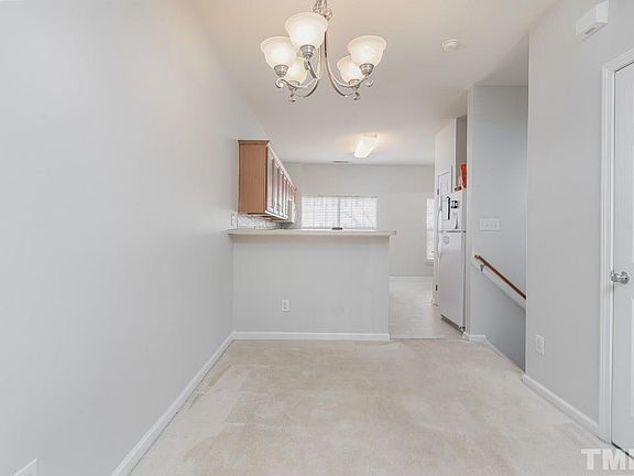Great home w/new carpet! A beautiful 3-story end unit in Wynterfield! Inside: enjoy the bright and open floor plan that features a kitchen with center island, breakfast area, and a spacious family room with fireplace, two master-like bedrooms with private baths and large closet space, and a lower level living area. Outside: enjoy the second level deck, patio, 1-car garage, and convenient access to major highways and RTP.