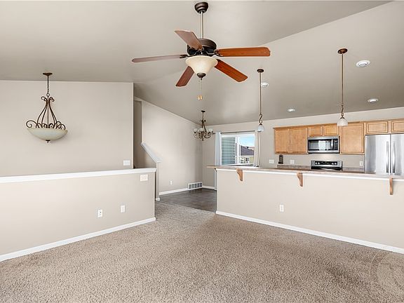 Comfortable home so close to schools, parks, & state land. Open main-level features vaulted ceiling, well placed windows, & a sliding door allowing abundant natural light. An L-shaped breakfast bar separates the living room / dining room / kitchen - perfect space to relax or entertain. Notice the spacious walk-in kitchen pantry. Downstairs find a large family room with daylight windows & half bath. The garage is nice & deep - lots of room for cars & toys, and the back yard is level and fenced. Don t miss out - Schedule a Showing Today!