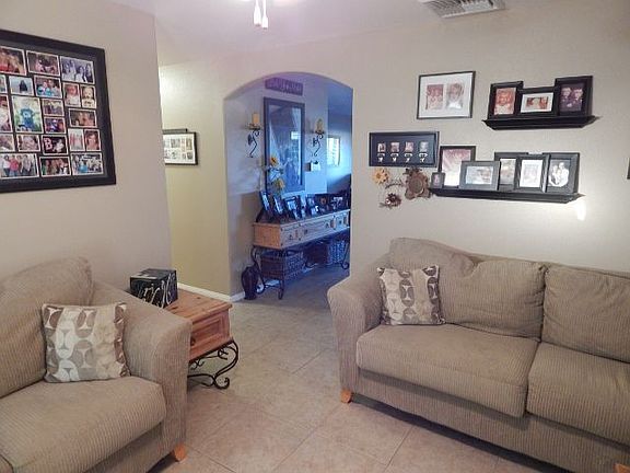 Cozy four bedroom home features separate family and living rooms, open kitchen concept, tiled floors in main areas, carpet in three bedrooms and laminate hardwood in the fourth bedroom. Ceiling fans in all rooms, indoor laundry room and large covered back patio. Garage is extra deep offering more room for larger vehicles, and the back yard is prepped and ready for a fire pit. Don't miss this beauty!