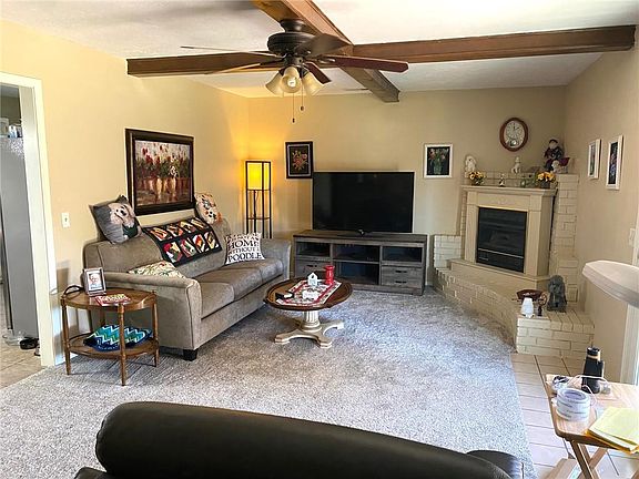Conveniently located near school in a quiet established neighborhood. Very well maintained home offering 3 spacious bedrooms, & 2 baths. Large living area with gas log fireplace that opens to the large covered patio. The kitchen offers laminate counters, painted cabinets, tiled backspace, & stainless steel appliances. (Fridge, washer, & dryer will remain with the home as part of the sale. Carpet in living area, halls & bedrooms. Ceramic tile in all wet areas. Spacious owner's suit offers 2 closets & 3/4 bath. Yard offers wood privacy, sprinkler system, large back covered patio, storm shelter & lawn shed. This home is in immaculate condition. It's a rare find at this price point..