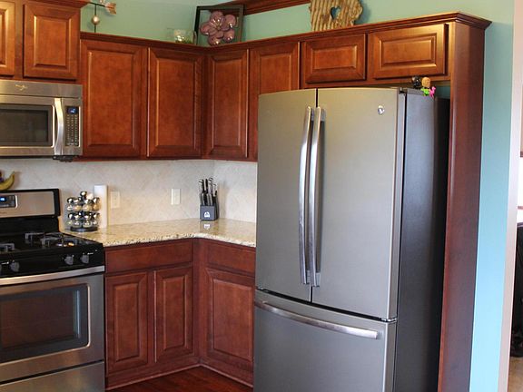 - Kitchen Features: Custom Cabinets, Dishwasher, Garbage Disposal, Vent Fan, Microwave, Solid Surface Cntr