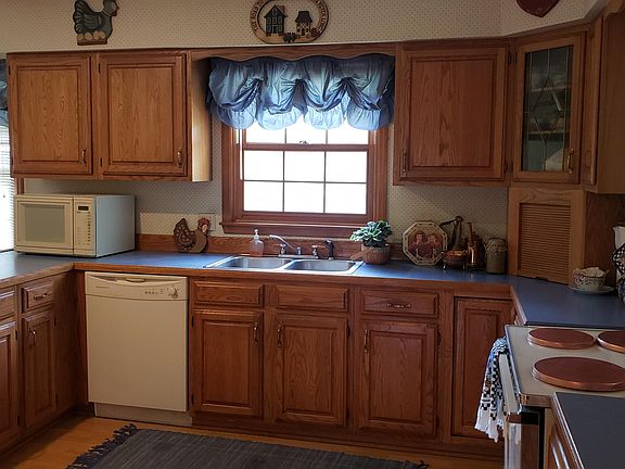 - Cabinets-Wood, Counters-Laminate, Eat In Kitchen, Wash/Dry Connection, Kitchen/Dining Combo