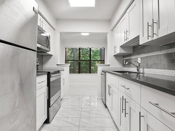Overlooking the poolFlooded with natural lightBeautiful tree-lined viewOpen floor planUpdated full kitchenRoomy bathroomModern kitchen cabinetry