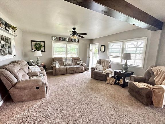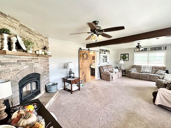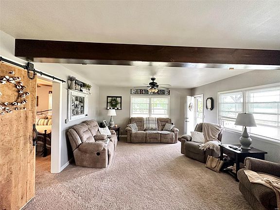 Country Living At Its Finest! Situated on 7.5 +/- acres close to Lake Lou Yaeger you will enjoy the peace and quiet this rural setting offers! The home boasts over 2,000 of living space and includes both a living room and large family room with fireplace for all of those get togethers and holidays you have been dreaming about. Main floor master and laundry room add to this home's appeal. There have been many updates to this property including new windows, flooring, and hot water heater in 2016 and furnace, air conditioning, gutters, and downspouts in 2020. Outside there are approximately 5.5 acres of tillable ground that could continue to be farmed or converted to pasture or recreational ground. There are two garages (22x18 and 30x26) with plenty of room for activities! The 22x18 garage is finished where you can enjoy an extra entertaining space. Hillsboro School District!