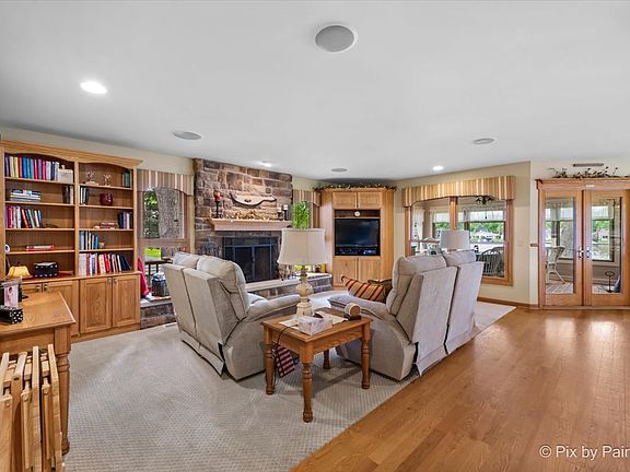 RIVERFRONT LIVING AT IT'S BEST WITH THIS 3 BEDROOMS / 2.1 BATHS / 5+ CAR GARAGE CUSTOM BUILT HOUSE ON 58 FEET OF FRONT FOOTAGE ON THE FOX RIVER! This House has it all w/ Oversized Living Room w/ Stone Fireplace, Eat-In Kitchen w/ Corian Countertops, Pantry Closet, Stainless Steel Appliances, Spacious Dining Room, 3 Season Room and Perfect for Overlooking the Yard and River, Spacious Primary Bedroom w/ Walk-In Closet & Private En-Suite Bathroom w/ Dual Sinks, Separate Shower & Whirlpool Tub, Office, Lower Level has 2 Generous Sized Bedrooms, Large Family Room w/Gas Log Fireplace, Additional 2nd Kitchen w/ Granite Countertops and Perfect for Entertaining after coming back for a Day of Boating on the River, Built-In Surround Sound Speaker System Throughout the House, Huge Storage Area, 400 AMP Electric Service, Whole House Generator, Two-Tier Trek Composite Deck, Kinetico Water Softener, Central Vac, Zoned Heating, Radiant Heated Floors in the Lower Level & Primary Bathroom & Attached Garage, 5+ Car Garage (3+ Attached Heated Garage & 2 Car Detached Garage) and great for storing all of the toys, Permanent Pier in 2019 , the House has a LOMA so it is out of the floodplain!