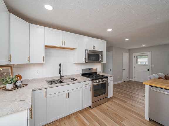 This 3 bedroom 1 bathroom ranch home with an oversized attached one stall garage has been renovated with modern aesthetics! Beautiful brand new white kitchen cabinets with gold finishes, along with updated appliances that are sure to capture your attention. No detail was left unnoticed when creating this beautiful space to call home. The basement has been torn down to studs for you to build sweat equity and add your own personal touch. Egress windows were added for a potential extra bedroom as well as an extra bathroom. A nice fenced in back yard completes this desirable home.