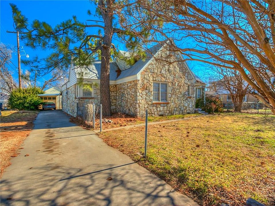 Great location in Historic Stockyards. Close to downtown, farmers market, Wheeler District, Plaza, etc.. This affordable solid stone home features a flexible floor plan, with two living areas - One of which could be used as an additional bedroom if desired. In addition to the two living areas is a study 13 x 6 off the master bedroom and an enclosed patio off the den area. The kitchen is quite spacious and does feature an interior laundry space. Single car detached garage is over-sized with room for a work area or storage and also features a carport.