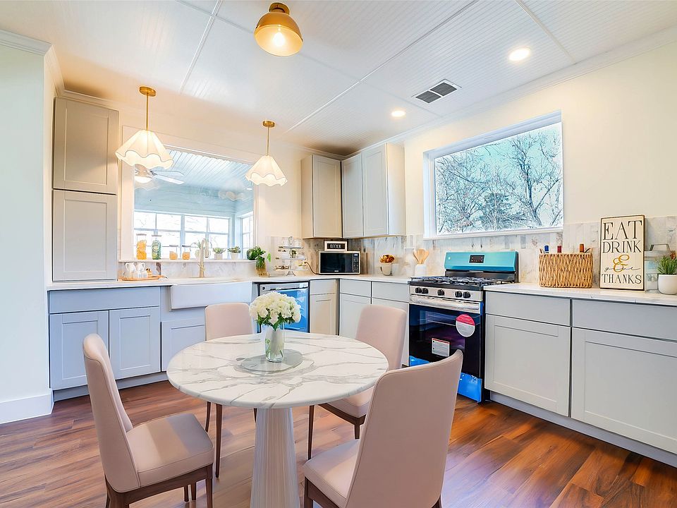 Sleek cabinetsHalf-acre lotOpen floor planNew ductworkEnclosed sunroomHand-scraped wood floorsStainless steel appliances