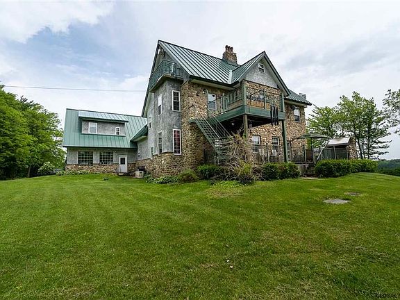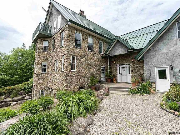 Talk about privacy! This incredible 15 year old cobblestone estate with 40+ acres with the Alplaus Kill rambling through! It offers a gourmet kitchen with custom cherry cabinets, upscale appliances, granite countertops, antique wood burning cookstove, 38' ceiling and a pastoral view. The flooring on the first floor is granite tile. The others are wood & ceramic tile. Cobblestone fireplace, full elevator access, floor to ceiling bookshelves in the library, antique light fixtures, attached greenhouse, generator, underground electric/cable, walk out basement with walk in cooler and much more! The nearly 15,000 sq' barn/equipment facility has finished office space and 2 workshops- many possibilities here. Add 167+ Acres Available for Sale to Complete Your Own paradise.