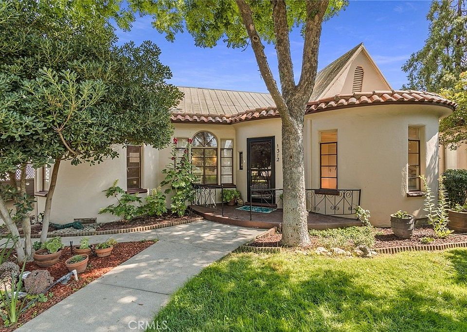 Gridley Charmer! This enchanting “storybook cottage” style home is a rare gem that's sure to delight! This home is a high-quality custom build with tons of character, including beautiful original hardwood flooring, a darling foyer entrance, seamless curved walls, central fireplace, and custom windows at every turn. The living areas are perfect for relaxing or entertaining, with plenty of natural light creating a warm, inviting ambiance. Both bedrooms are generous in size and come equipped with ceiling fans, ensuring comfort and ample space for relaxation. You will love the bathroom with Mediterranean-inspired colors, while enjoying the spa-like feel of a walk-in shower or bathtub option. The kitchen boasts new walnut countertops, tiled backsplash, breakfast bar, and ample space for your dining table. Unveil in the delight of a spacious and well-appointed indoor laundry room. The laundry room offers access to a ‘wine cellar’ style basement, which provides additional opportunities for storage or creative use. Prepare to be captivated by the exquisite outdoor space, featuring meticulously landscaped garden areas with fruit trees, a fully fenced backyard, and ample room for your outdoor furniture where you can indulge in moments of pure enjoyment. The single car garage offers abundant storage space for all your supplies, ensuring ample room to keep everything organized and readily accessible. Moreover, you will adore the expansive carport, offering parking spaces that can accommodate multiple vehicles with ease. Situated a mere 3 blocks away from downtown Gridley, this home offers the perfect blend of tranquility and convenience. Check out the 3D tour. This is your opportunity to own this charming home!