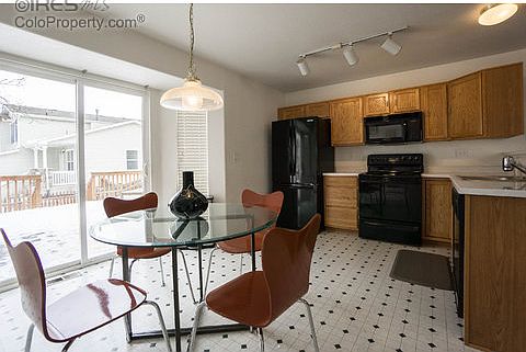 Beautiful large deck in large backyard (one of the largest in the community.) Main level master with walk-in closet. Double sinks on main floor bath. Lots of closets throughout. 2nd and 3rd bdrm on upper level with full bathroom. Beautiful view of Longs Peak from 2nd bedroom. Eat-in kitchen area. Open floor plan. One of the few homes in Wolf Creek with a full basement. Basement has rough plumbing for 3rd bathroom.