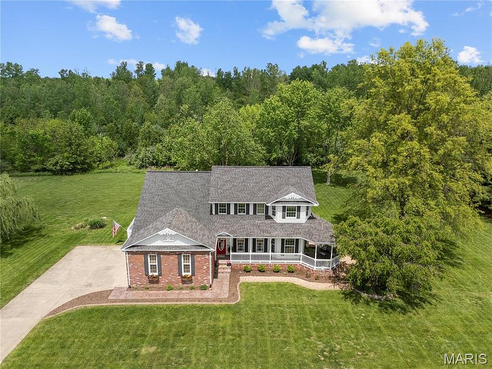 You won't want to miss this 3,000 SF CUSTOM built, ONE OWNER home that is loaded with quality & updates! Situated in the highly desirable Freeburg School District on ONE ACRE of property, this convenient country setting offers easy access to SAFB, highways, employment & shopping BUT also provides wildlife, peace & no HOA fees! You will fall in love the minute you step onto the beautiful, wraparound porch which is the perfect spot to sit w/ friends, have coffee or read a book! The jaw dropping kitchen boasts incredible built Amish cabinetry, granite countertops & opens to the two story family room w/ FP. There is also a main floor primary suite w/ luxury bath & jacuzzi tub, formal dining room, laundry & 1/2 bath. The second level features 3 BR, walk-in closets, loft & full bath. There is also a finished lower level w/ a family room, den & nook w/ RI plumbing. See Detailed Information Sheet for updates & additional amenities! Must See!!!