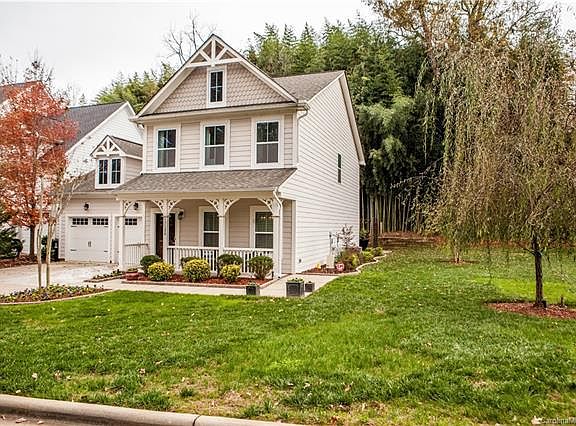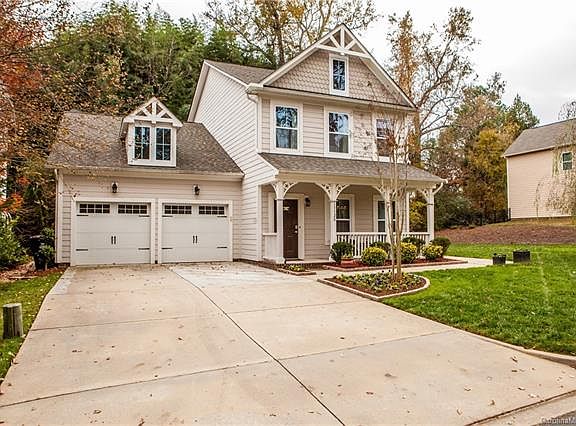 FORMER MODEL HOME filled with upgrades! Butlers pantry, oversize kitchen island w/bar seating, granite in kitchens & baths, custom dark wood cabinetry, stainless appliances, surround sound system (in & out back), hardwood flooring, covered front porch, walk in pantry, wainscoting, beam details & double sink vanities in both full baths. Enjoy extra space from the unbuildable landscaped HOA easement lot between you & the neighbor. Relax after a long day out back on the slate patio w/lighted privacy wall & buffered by a forest of bamboo plants - seller put in a drainage system & sump pump installed out back to avoid issues w/puddling water. HUGE bonus w/full wall of built ins! Master on main. Full Irrigation system, new HVAC & low HOA fees. Membership can be purchased at a few local neighborhoods for access to a pool and other amenities if desired. Great opportunity to be in Davidson at this price! Access to Davidson 6 mile greenway for walking & biking. Beautiful home!