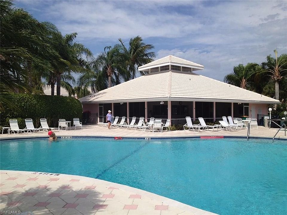 C.13605 - Enjoy a charming lakefront Garden Home w/no stairs. Prime location 3 doors from Clubhouse, pool and spa. Sunny exposure, boasts lanai and front walled Courtyard. Furnished, 2/2 mint condition, large breakfast room off white kitchen, complete the total 1623 sq.ft. pkge. BG's is newly painted and new slate roofs & a friendly social atmosphere. 3 miles to beach, Mercado & Waterside shoppes. Membership at Imperial Golf Club available (optional) w/2 championship golf courses.