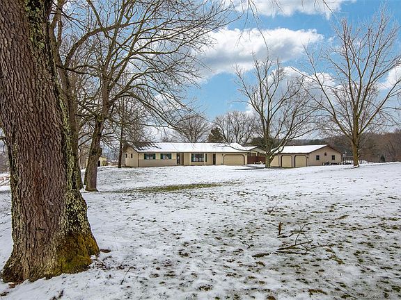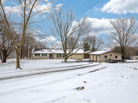 Beautiful ranch home offering 2450 sqft with 3 bedrooms, 2.5 baths, and 5 acres of land in a gorgeous country setting. Brand new laminate wood flooring, carpet, trim, paint throughout the home. Immaculate kitchen remodel from top to bottom. Archway leading into kitchen widened, added pantry, brand new cabinets & layout, new quartz counter tops, copper sink, backsplash, undermount lighting, flooring, paint, & black SS appliances. Full Bath in hall has new surround tub, flooring, updated vanity. Basement offers potential 4th BR/Office in addition to more sqft just waiting to be finished. Home is further complimented by a four seasons room w/woodburning stove, 2 car attached garage, 3 car detached garage, storage shed, & covered patio/deck area for entertaining in the warm summer months.