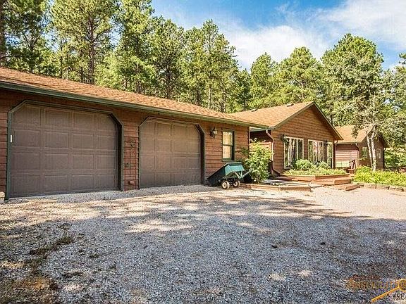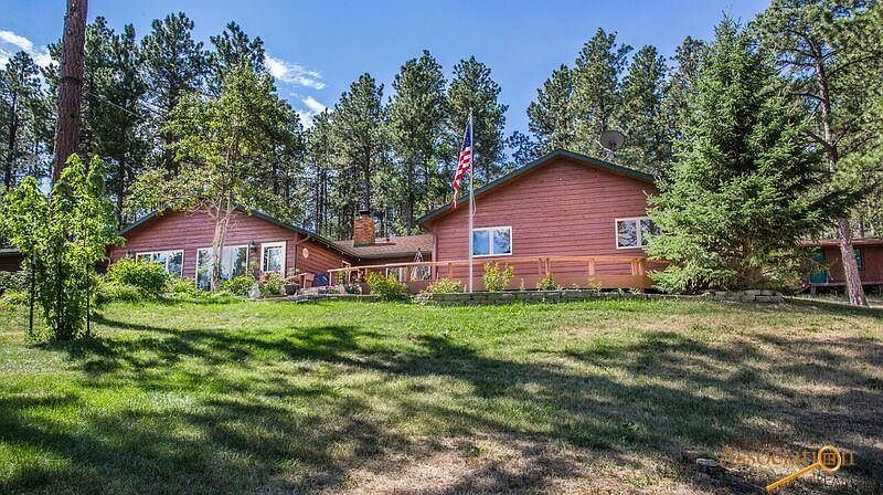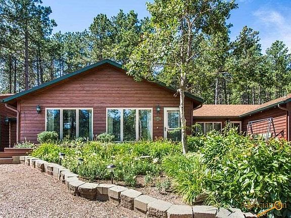 Come and Tour this one-level Ranch Style home, located on 7 acres, backed up to Forest Service! There is a 3200 sq ft Outbuilding/Shop, with finished office space, and plenty of room. It is big enough for your tallest RV! You will adore the 1000 sq ft Guest Cabin, perfect for guests or supplement your income! The property also has a Heated Hobby Shed and an Insulated and Finished attached 2-car Garage. The 3-bed, 2-bath home is almost 2500 sq ft, with a 6 man wet/dry sauna, 2-sided Fireplace, Skylights, breakfast bar in the kitchen, remodeled bath, full master suite, nice kitchen and large dining room. The guest cabin comes partially furnished. Landscaping galore! With all these acres and Forest Service, and the amazing outbuilding, don't let this Black Hills Dream pass you by. Listed by: Amanda Kirschenman, Coldwell Banker LKH.