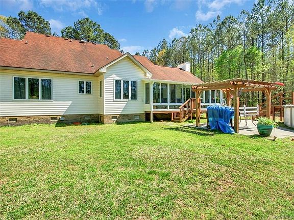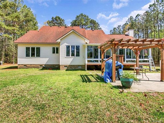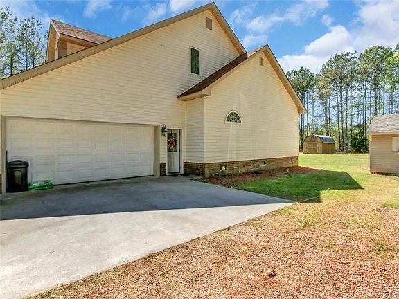 What a grand place to call home!! Open floor plan with great flow for entertaining. Lovely wood floors, spacious kitchen with more than enough cabinets, bar area, breakfast nook, built in desk area, downstairs master with separate sit down shower and garden tub, wonderful Florida room overlooking manicured yard, above ground pool, and patio area - all for hours of entertaining !!! Upstairs features 2 nice bedrooms, double linen closets, walk out attic storage, balcony area, and so much more, Attached garage is like another room - clean as a whistle and more space for entertaining - man cave - or she cave!!! 2 additional storage sheds Quiet country setting yet close to Tri City area as well as Franklin/Hampton Roads - Qualifies for 100 % USDA Funding