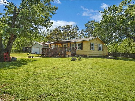 Super cute home on acreage in Choctaw! Updates in the last 3yrs include -- windows, huge front deck and cover, refinished hardwood floors, new cabinets and stainless steel appliances in kitchen (refrigerator to remain with acceptable offer), & new tile in bathroom. Two nice size bedrooms & a huge laundry/storage room. Detached garage with new garage door. Storm shelter.
