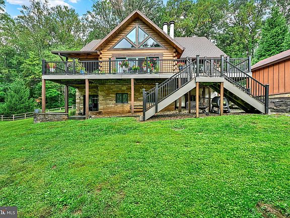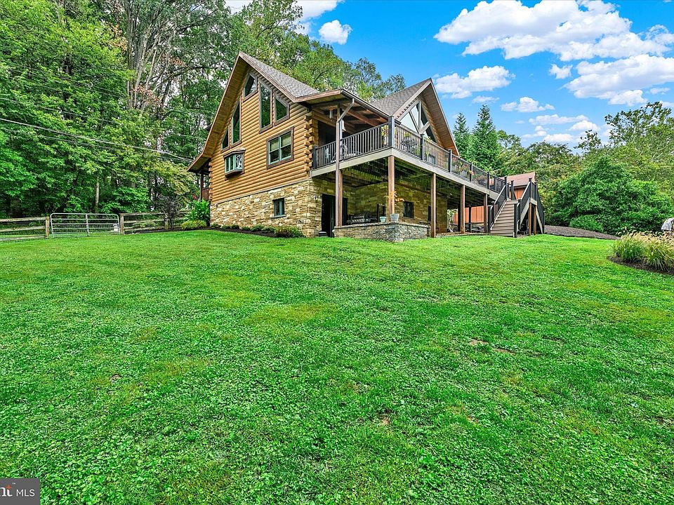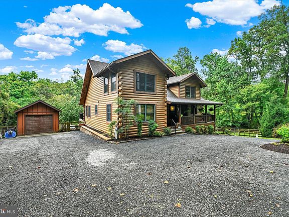 Welcome to 13121 Bottom Rd! Discover this one-of-a-kind modern log home, custom built in 2007, and perfectly nestled on a beautifully landscaped lot. This remarkable residence combines the charm of rustic design with the durability of superior foundation walls, ensuring both sturdiness and tranquility. The first-floor living layout offers convenience and accessibility, featuring a spacious master bedroom, a well-appointed bathroom, a large kitchen, and a laundry area—perfect for easy living. An additional bedroom or office space on the first floor adds versatility to the home’s design. Use your creativity with the unfinished basement, with impressively tall ceilings and plumbing rough-ins, ready to be transformed into your ideal space. A one-car garage and a run-out shed down the hill provide ample storage solutions. Embrace the serenity of the surrounding landscape, with a beautiful creek running along the property and plenty of land to explore and enjoy. The peaceful setting is ideal for growing plants and gardens, offering a gardener’s paradise with mature landscaping. This home is set on a quiet road, enhancing privacy and offering a retreat-like atmosphere. With exposed woodwork, soaring ceiling heights, an open floor plan, and beautifully crafted custom stone work, this home is as aesthetically pleasing as it is functional. Superbly insulated, it ensures comfort and energy efficiency throughout the seasons. Fun fact! Extensive research suggests that wood homes and interior walls positively affect mental health, largely due to a psychological connection to nature. The natural aesthetic and warmth provided by the wood enhance well-being, making this home a peaceful place to live! Experience the perfect blend of nature, privacy, and modern living at this extraordinary log home.