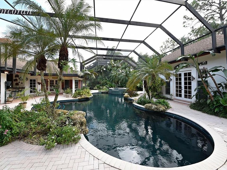 Pinewood of Wellington, Wellington, Florida - 'Tropical private resort! 10 beds, fully furnished, large lagoon pool 40' x 23', spa, private screened lanai. Outdoor kitchen, guest house. Perfect retreat for the Polo crowd. Main house is 6,000 SF with a 900 SF guesthouse