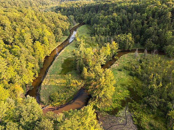 Bear Creek frontage, surrounded by 14,577 acres of Manistee National Forest on South Side and 284 acres of State Land on the West side. Miles of Bear Creek and Land to explore if 39 acres wasn't enough to play on! This home has been used as a primary residence for years, but would also make for a perfect cabin retreat. Very private setting, set off the road with 2 beds, 1 bath, full basement, 2 car garage, and sauna for those cold nights. Roof was installed in 2022, garage is a 24x30 with electric, Sauna has water hooked up inside building, laundry facilities and shower in basement. This property really is a rare gem that don't come on the market often, don't miss out on your opportunity to own something that others will envy! So don't miss out on having your very own Salmon and Steelhead run sanctuary being on the Bear Creek!