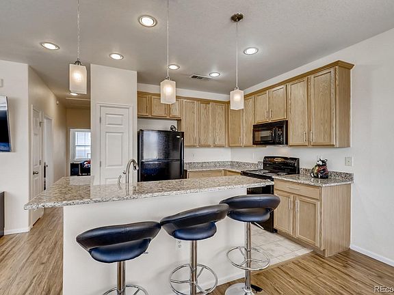 This gorgeous 2 bed 2 bath is in the Thorncreek Village community on the Thorncreek Golf Course! Just a 5 minute drive to the N train or 8 minutes to the 120X Bus for an easy commute to Union Station. From the moment you enter the unit you are greeted with a wide open floor plan that connects the kitchen, living room and dining room. The Kitchen features a large island with granite counters and pendant lighting. Laminate and tile flooring throughout the unit, making cleaning a breeze! Lots of windows and natural light. Off the dining area is a large private balcony with views of the mountains, making it a great spot to enjoy a morning coffee or watch the sunset. The master suite features a full en suite bath with a large walk-in closet. It also features an attached oversized 1 car garage. Best of all, there is a community pool for you to cool off in during the hot summer months! Ecobee smart thermostat to help you save money on your energy bill. Landlord pays monthly HOA which includes water, trash, landscaping, snow removal and pool! Please note: one small pet (dog or cat) up to 35 lbs allowed with a $250 pet deposit required. Pet friendly (additional pet deposit required). Landlord pays HOA which includes water, trash, snow removal (common areas of neighborhood) and pool access (May-Sept). Smart thermostat to help save on your energy bills!